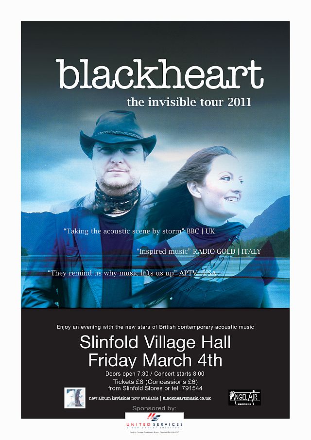 "There's no difficulty in recognising the emotions bound up in each song. These are personal stories, prayers, encounters and experiences revealed by lovingly crafted lyrics in piercingly sharp observations. Chrissy's vocals slide from soft breathy delicacy, through joyous harmony and precise control, while Richard's guitar talent is imaginative and inspired; and their harmonies are just luscious. Their debut album, Indigo showcased the skill, depth and range that Blackheart entwine into their songs. It also reflects the influences and journeys that create their unique sound. Without doubt their new album 'Invisible' will be an equal blend of perceptive personal reflections on people, places, memories and futures. Blackheart are going places, no question, no doubt." — FOLKWORDS